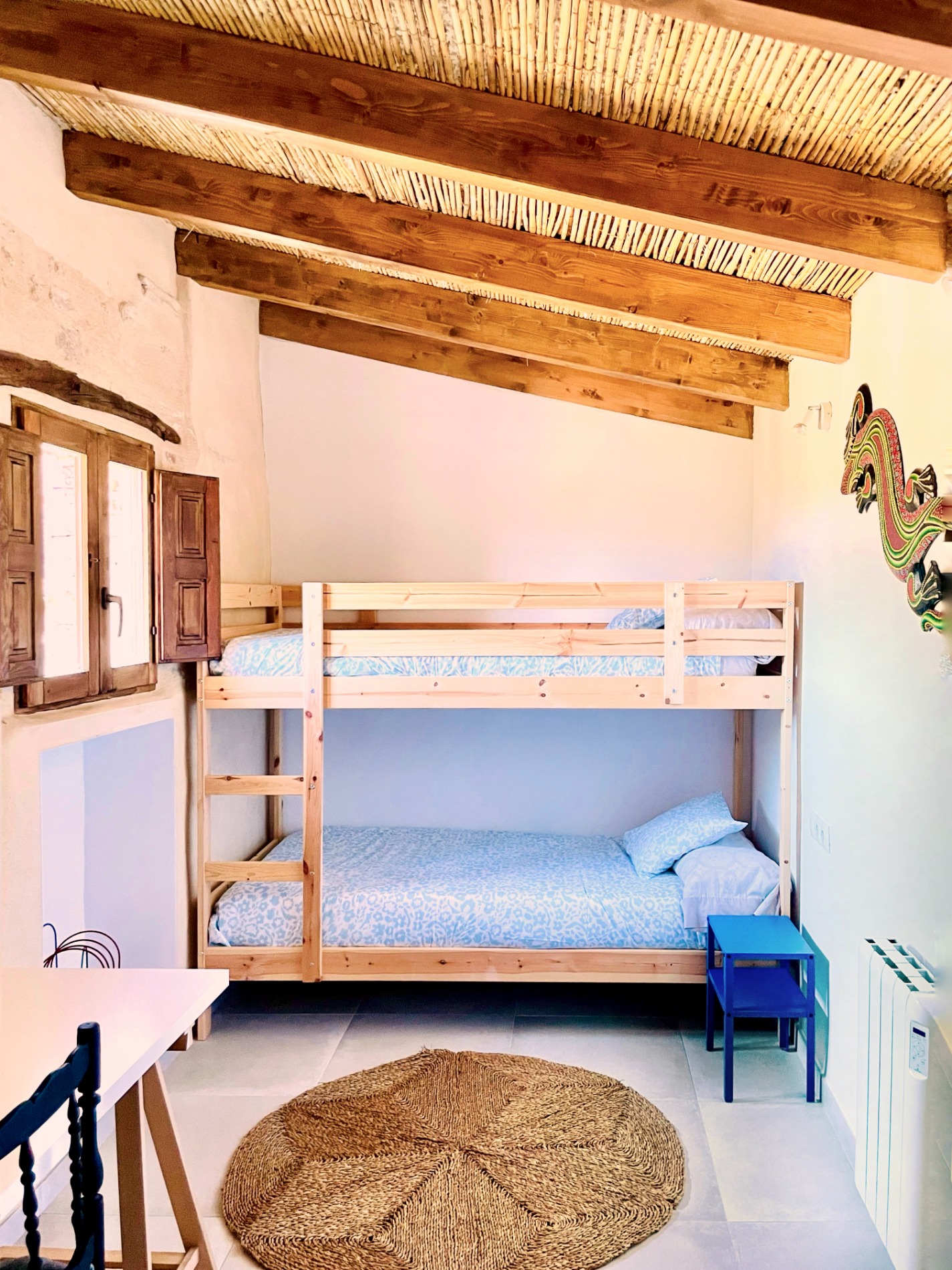 La casa es compon de dos plantes. En la planta baixa es troba la cuina - menjador, una habitació doble, un bany complet amb dutxa i dos lavabos i una bonica terrassa. En la planta superior ens trobem amb una habitació doble, una habitació amb llitera amb un espai per a treballar o estudiar i bany. Capacitat total per a 6 persones és ideal per a famílies.