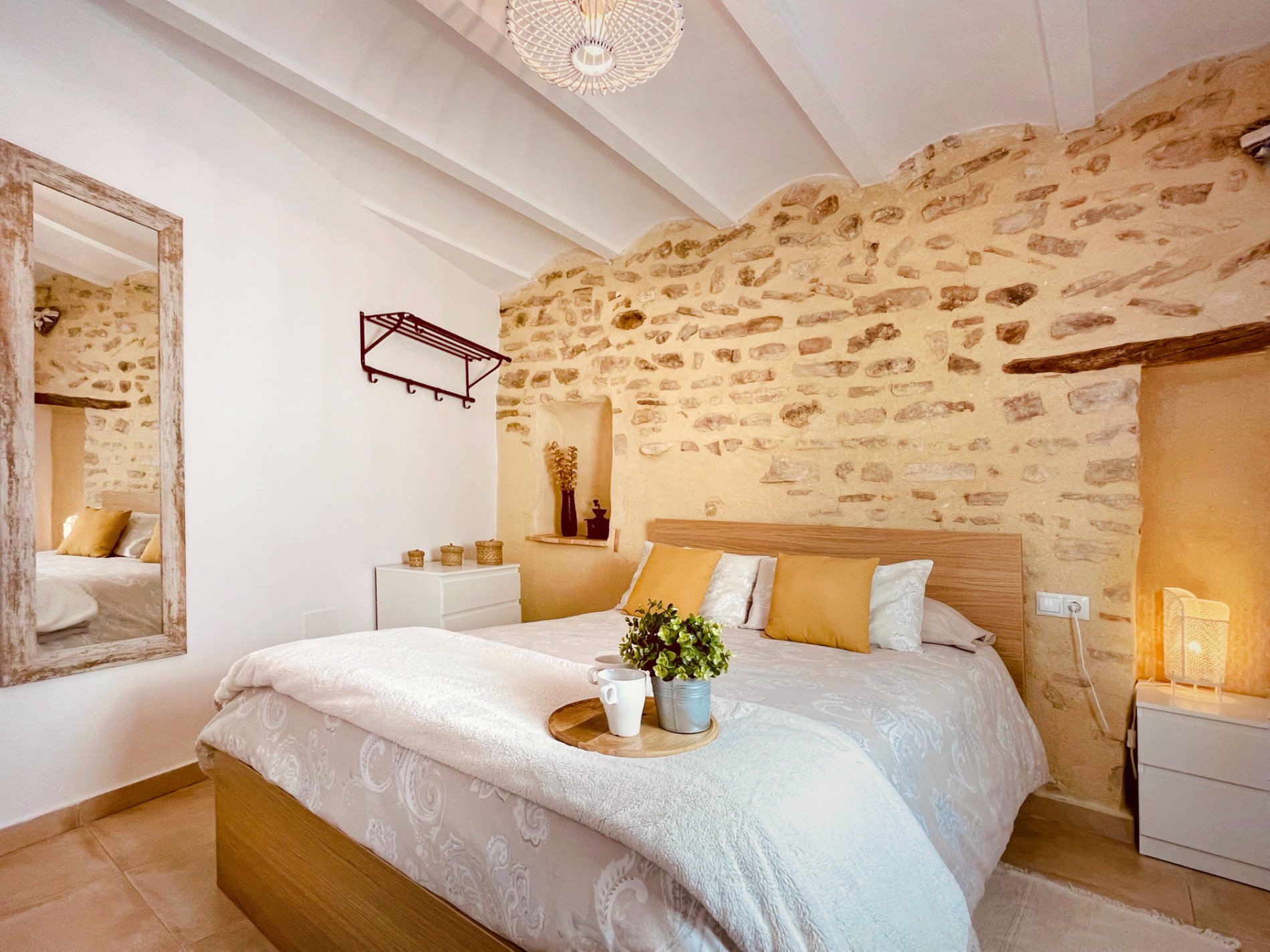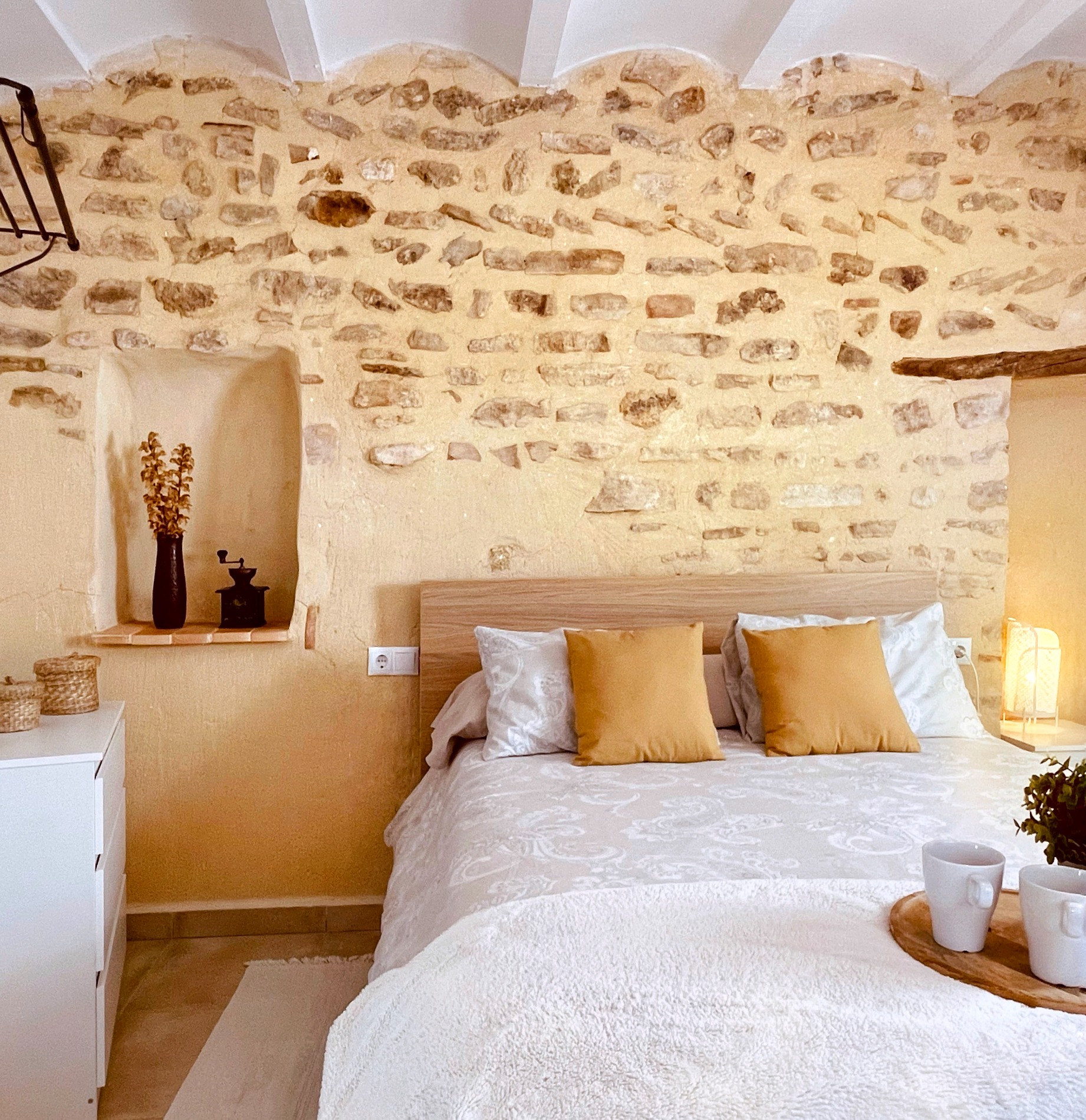 Ca Dionisio, es una pequeña y familiar casa de pueblo, situada en la zona antigua de Planes, a los pies del castillo, en una zona tranquila y con unas preciosas vistas. Las paredes de piedra originales de la casa y los colores neutros que la caracterizan, nos dan una sensación acogedora.